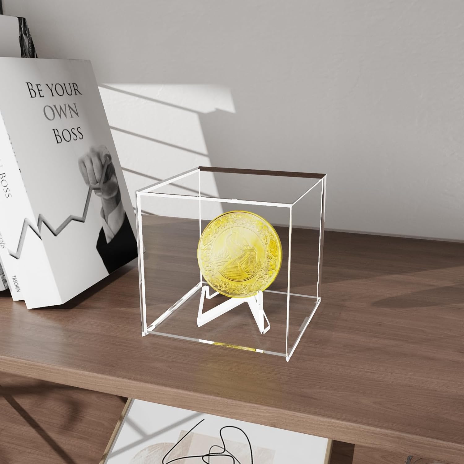 Championship Ring Display Case, Clear Baseball Ring Display Case, Acrylic Square Championship Ring Box for Football Softball Championship Rings with Stand, Small Ring Case Display 2.5 Inch