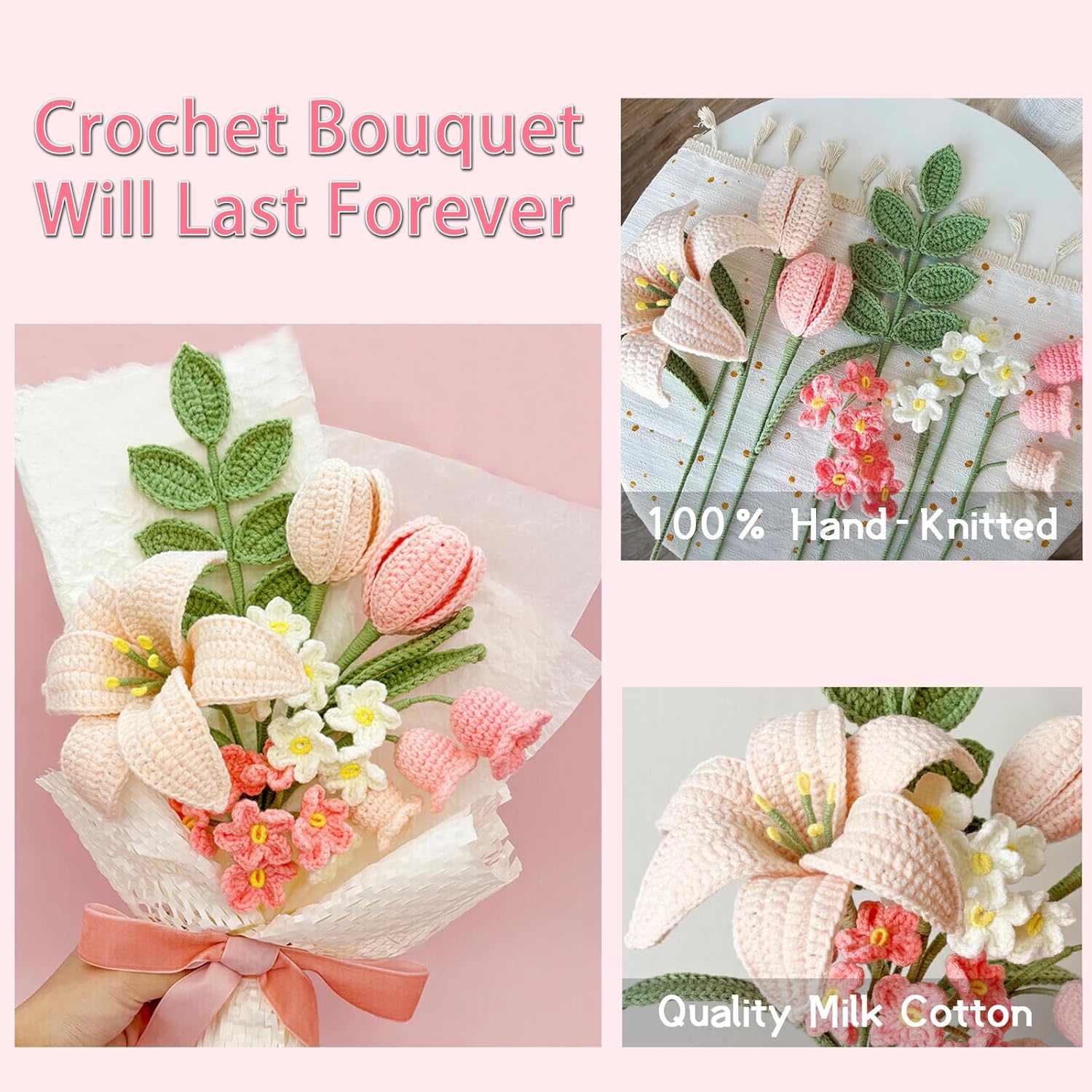 Our crochet bouquet with greeting card and carry bag have quality yarn,soft color,will bring a big smile and brighten up for recipient.QaingNe bouquet for crochet flowers is a cute gift for anyone on your list and any occasion.