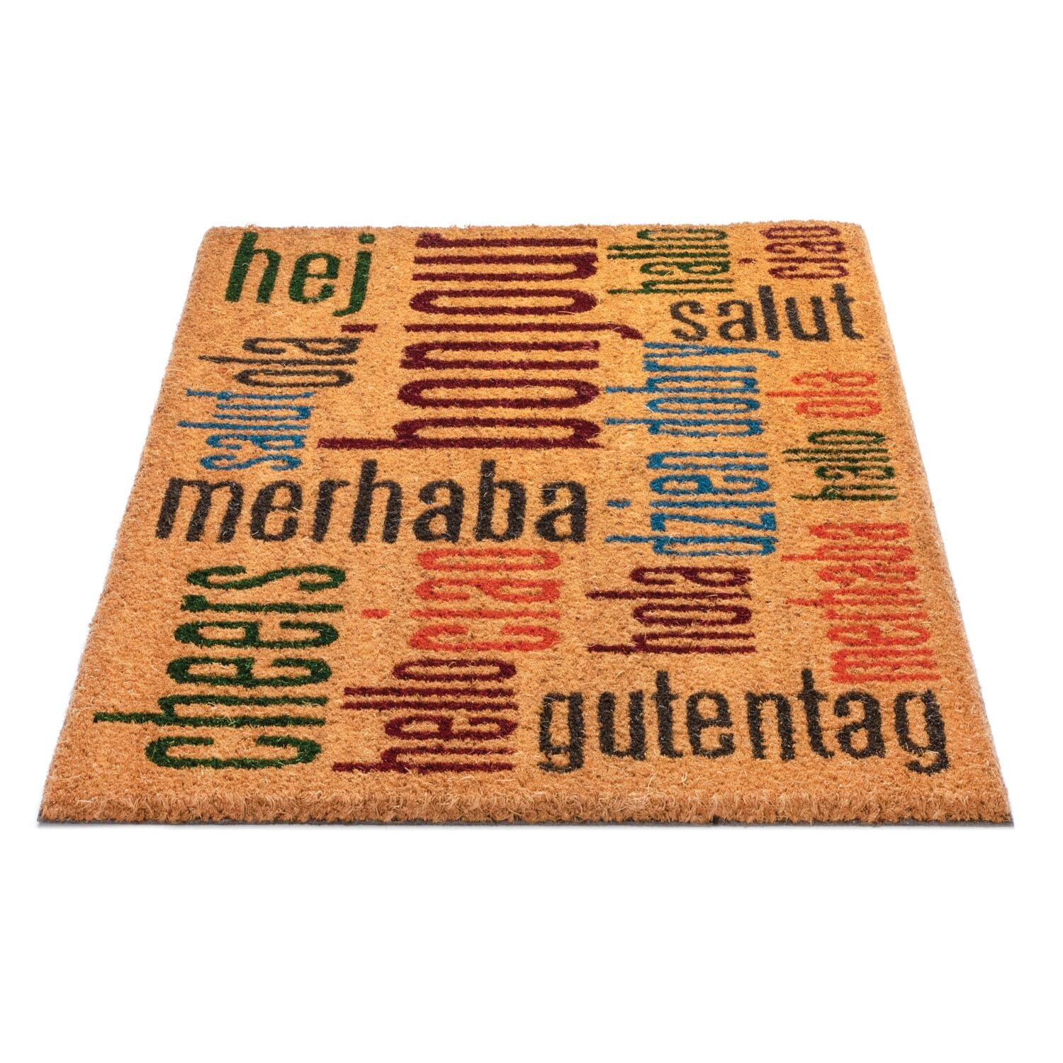 Add some character to your entrance with a decorative coir outside door mat. The coco mat is made from natural coconut fiber, so it is an environmentally-friendly choice. Each colorful outdoor mat has UV protection for fade resistance, keeping colors lovely for seasons to come. It is weather-resistant, water-resistant, and durable. Thousands of bristles create a rough pad for your guests to scrape their shoes to remove dirt and debris, perfect for the heavy-duty traffic from people entering the house. The vinyl backside of this coir mat helps keep it from slipping and prevents dirt and moisture from passing through.