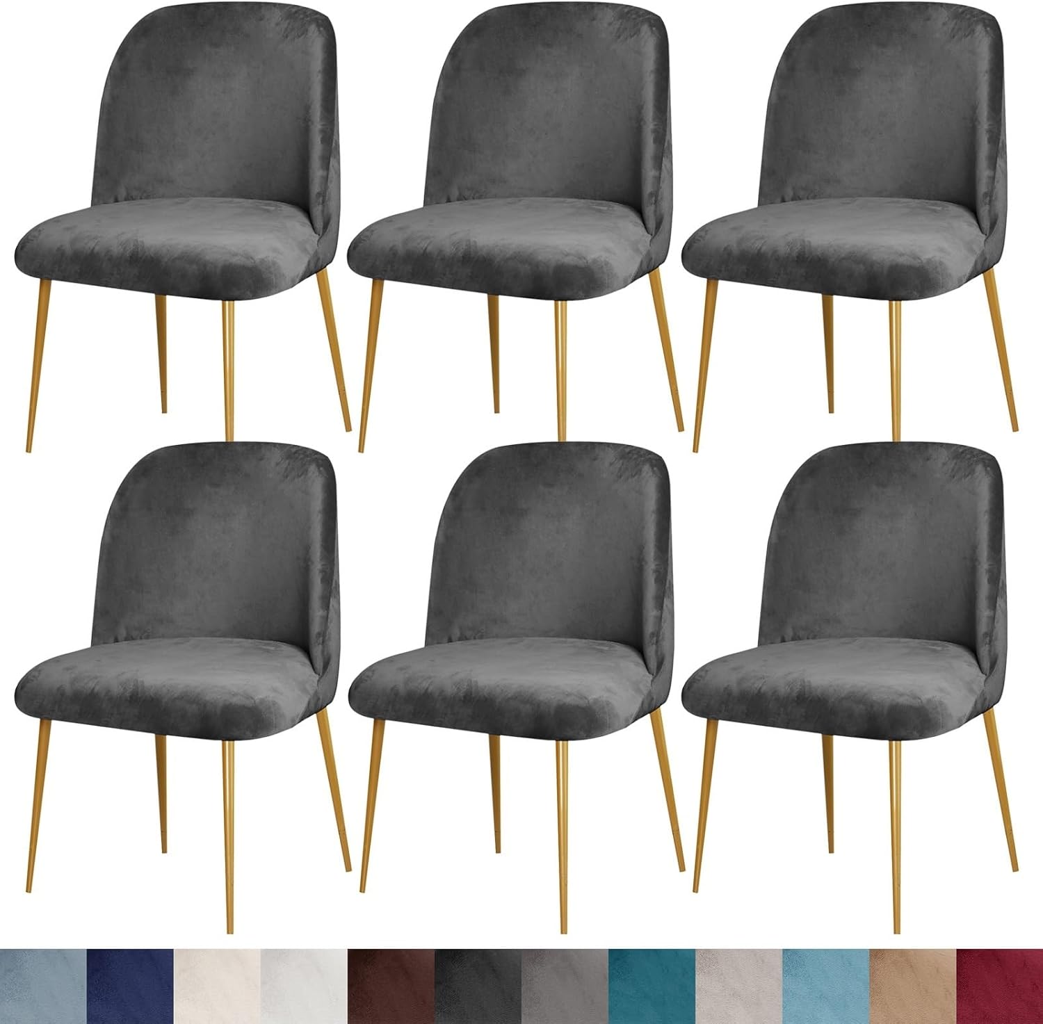 HIGH STRETCHKitchen dining room chair slipcover are made of high stretch fabric and can be adapted to most armchairs.SOFT MATERIALAccent chair slipcover are made of high quality velvet material,soft and durable.FOAM STRIPSlipping the complimentary foam strips into the gaps between the back of the seat and the seat cushion can rovide a non-slip effect.ELASTIC BANDEach of bar stool cover designed a elastic strap around the edge of the cover keeps the chair cover firmly in place.Size:Seat backrest height: 13"-15" (35-40cm)Seat Length: 18"-20" (45-50cm)Seat width: 15"-18" (40-45cm)Please measure before purchase, please refer to the measurement guide in the picturePackage Included:1/2/4/6 x Set of Chair Covers (Chair Not Included)Notes:1. Please carefully read the Size Chart we provided in the pictures, and measure your chair size to determine if it will work.2. Please understand that the actual color may have a slight color difference from the picture due to the effect of lighting, shooting and monitor.3. Due to manual measurement and cutting, there may be 1-2 cm error, which is normal, thank you for your understanding.4. Machine washable for easy care and maintenance, keep fresh look after many times washing.